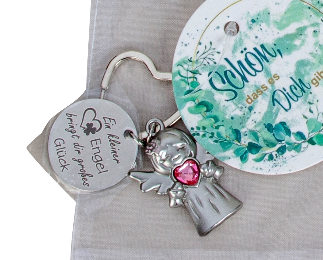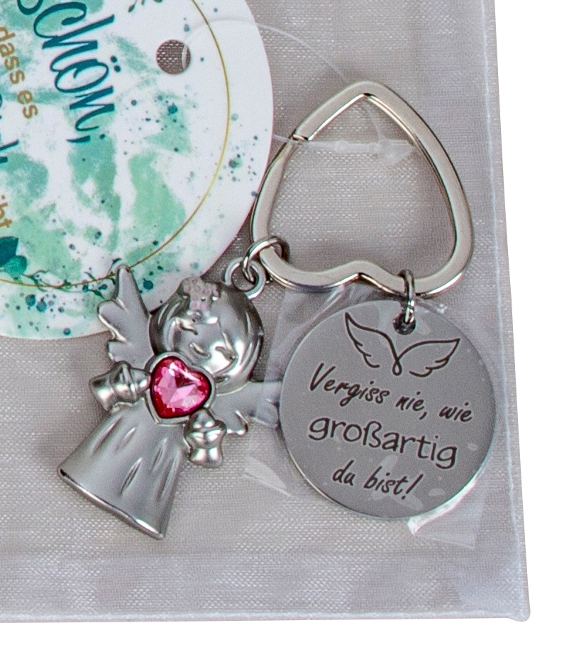 Engel m. Anhänger verschiedene Sprüche als Schlüsselanhänger h=7cm in