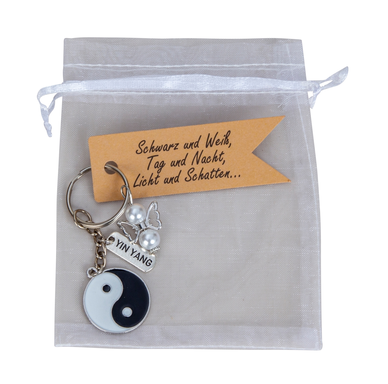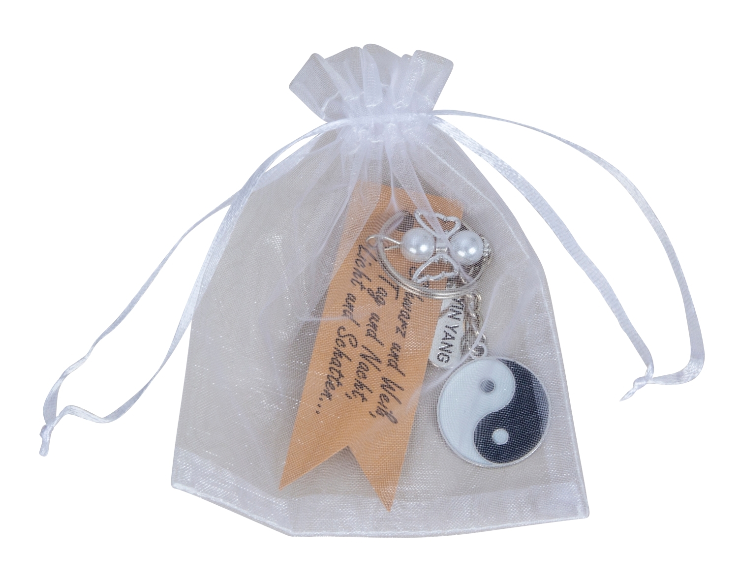 Engel m. YIN YANG-Anhänger als Schlüsselanhänger h=8cm in Organzabeutel