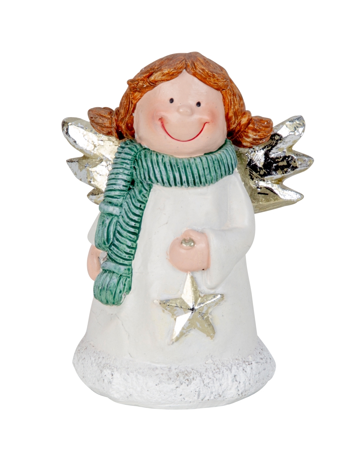Engelsmädchen stehend mit grünem Schal & Stern in der Hand h=12,5cm b=9,5cm