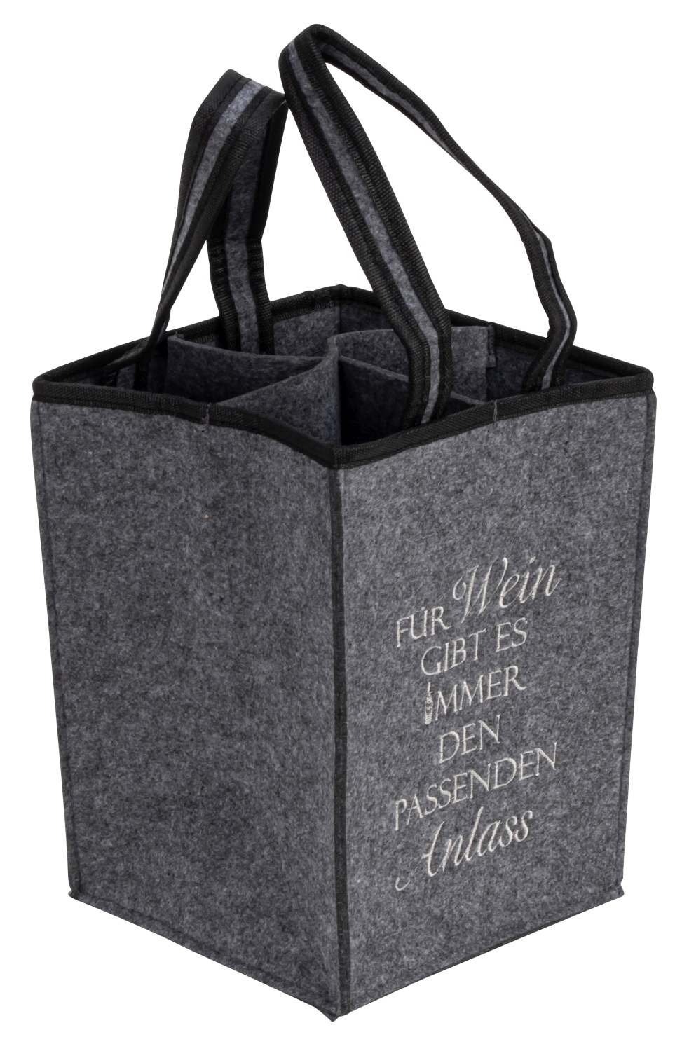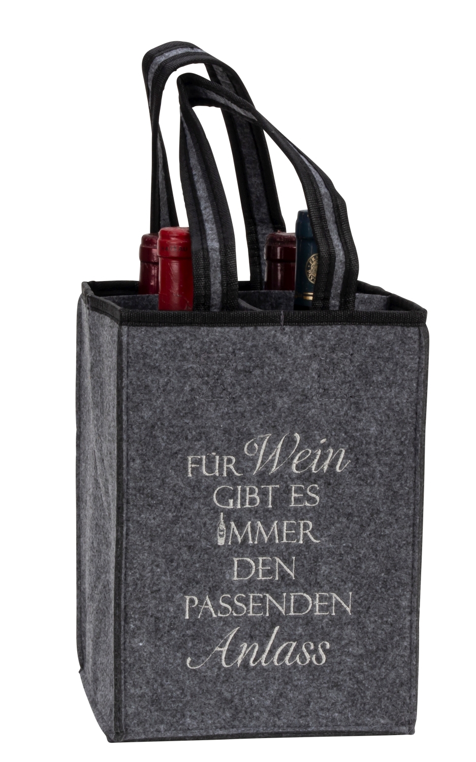 Filz-Tasche für 4 Flaschen 25x18x18cm mit einseitigem Stick "Für Wein gibt es