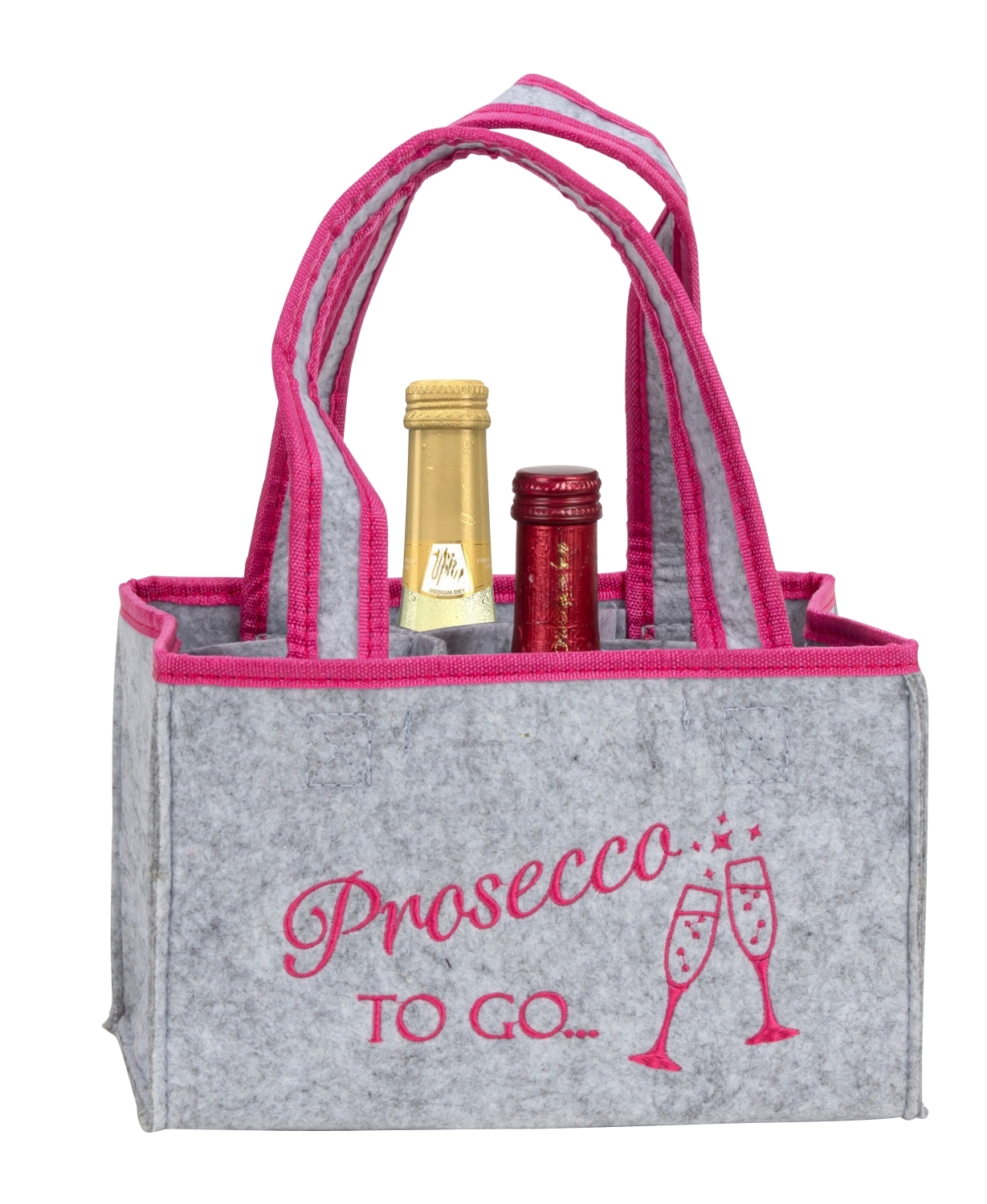 Filz-Tasche für 6 Flaschen 24x15x15cm mit einseitigem Stick "Prosecco to
