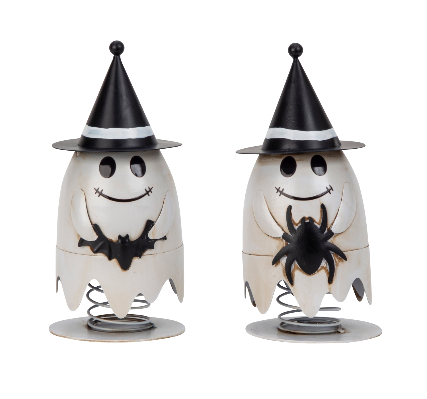 Gespenster mit schwarzen Hut mit Wackel-Feder zum Stellen h=21,5cm b=10cm
