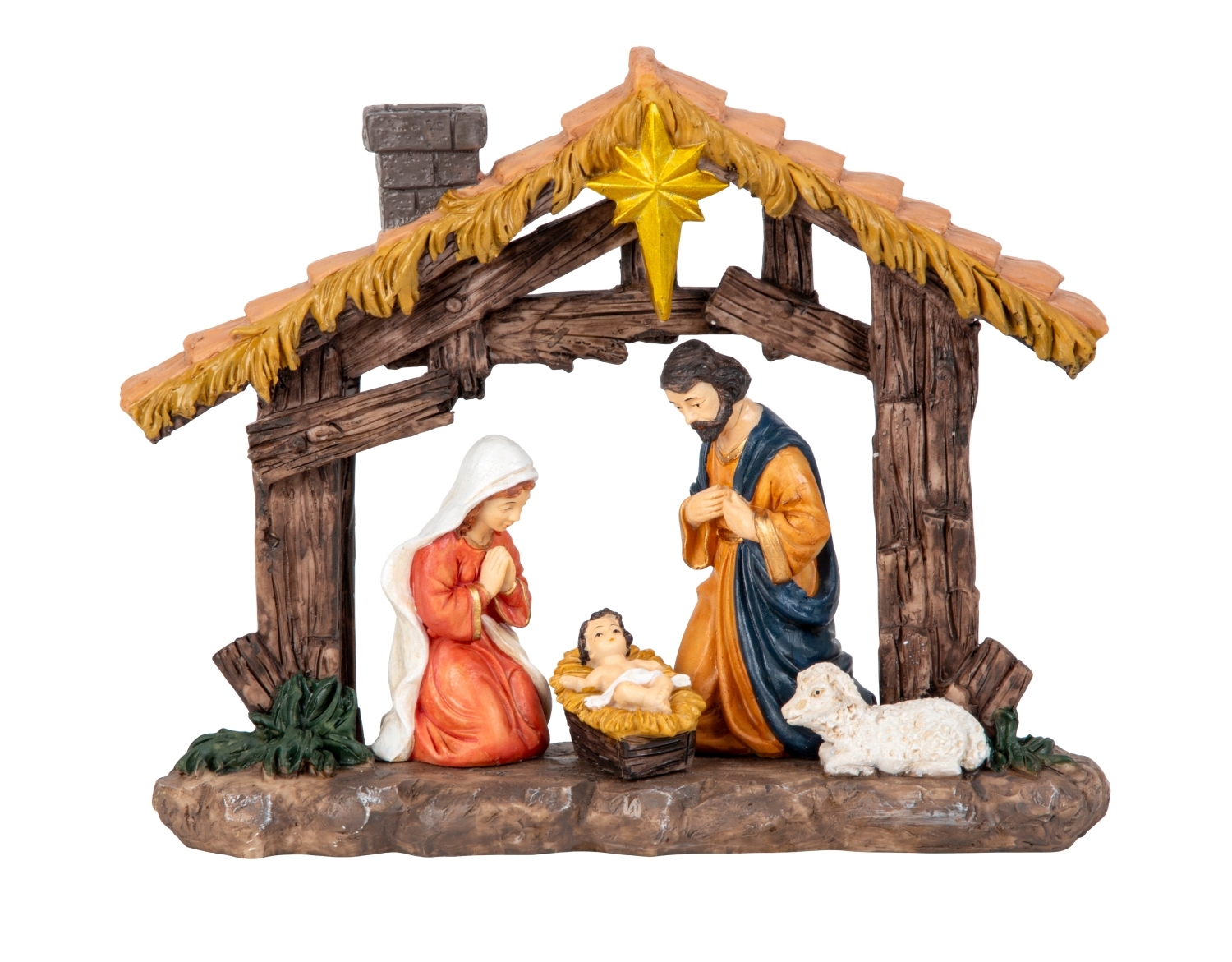 Krippenhaus mit Stern & Krippenfiguren h=21cm b=25,5cm