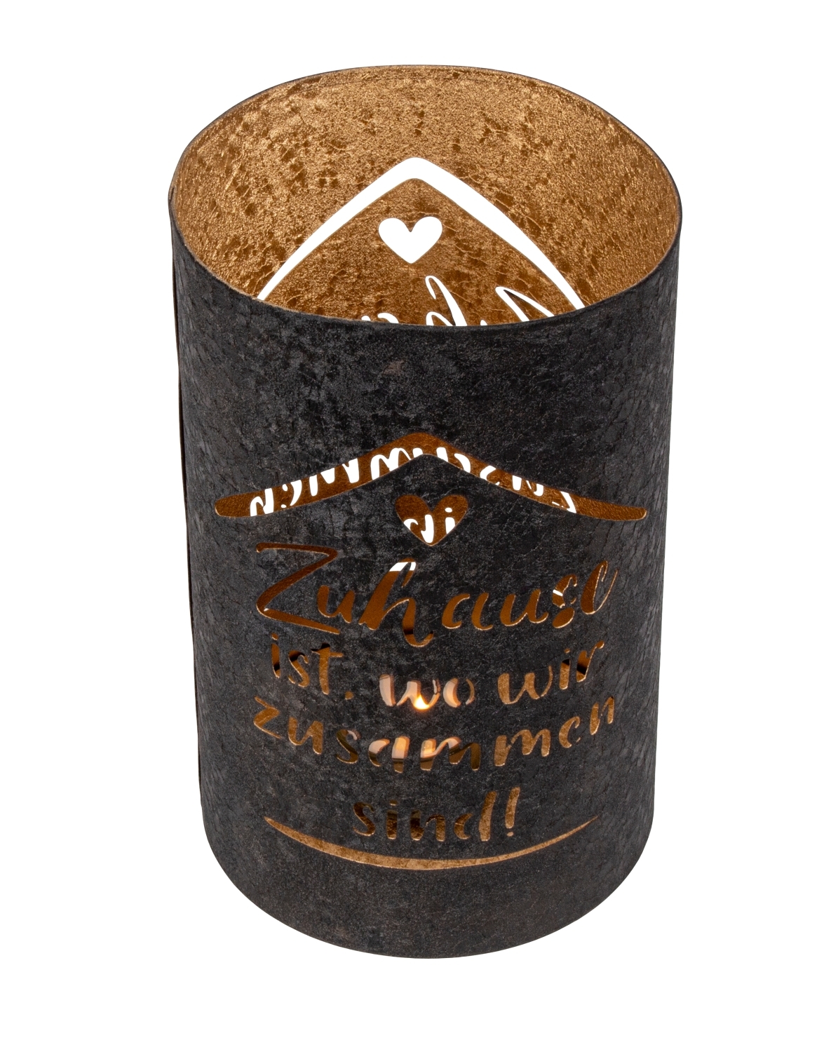 Metall-Teelichthalter schwarz/gold h=20,5cm d=13cm