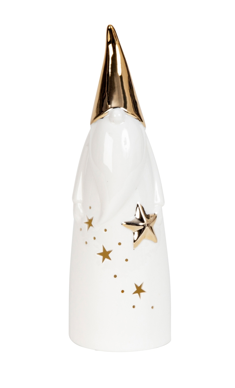 Nikolaus stehend mit goldener Mütze & Tannenbaum in der Hand mit LED Licht