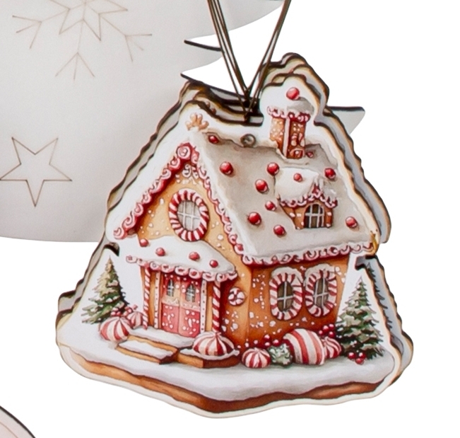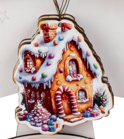 Weihnachts-Holz-Deko Häuserform zum Hängen h=9,5cm b=9,5cm sort. (48 Stk. in