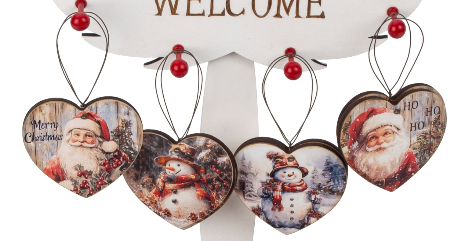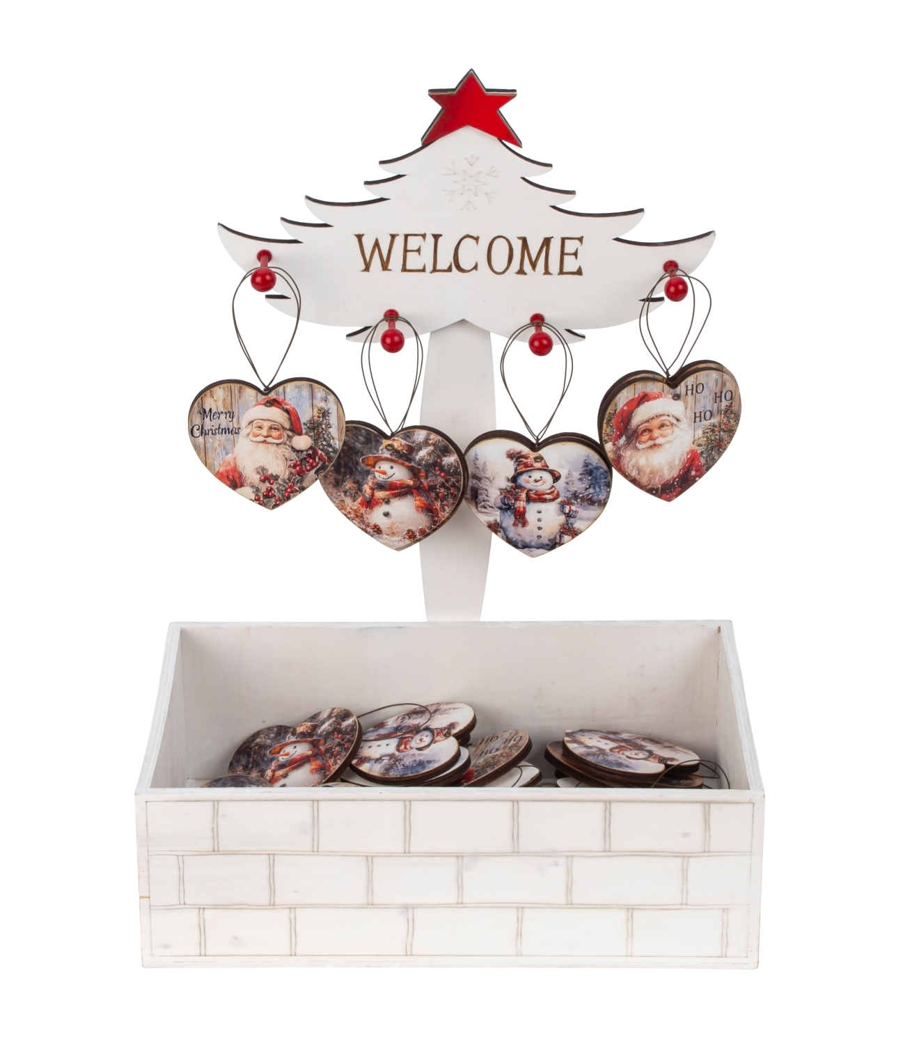 Weihnachts-Holz-Deko Herzform zum Hängen h=7,5cm b=6,5cm sort. (72 Stk. in