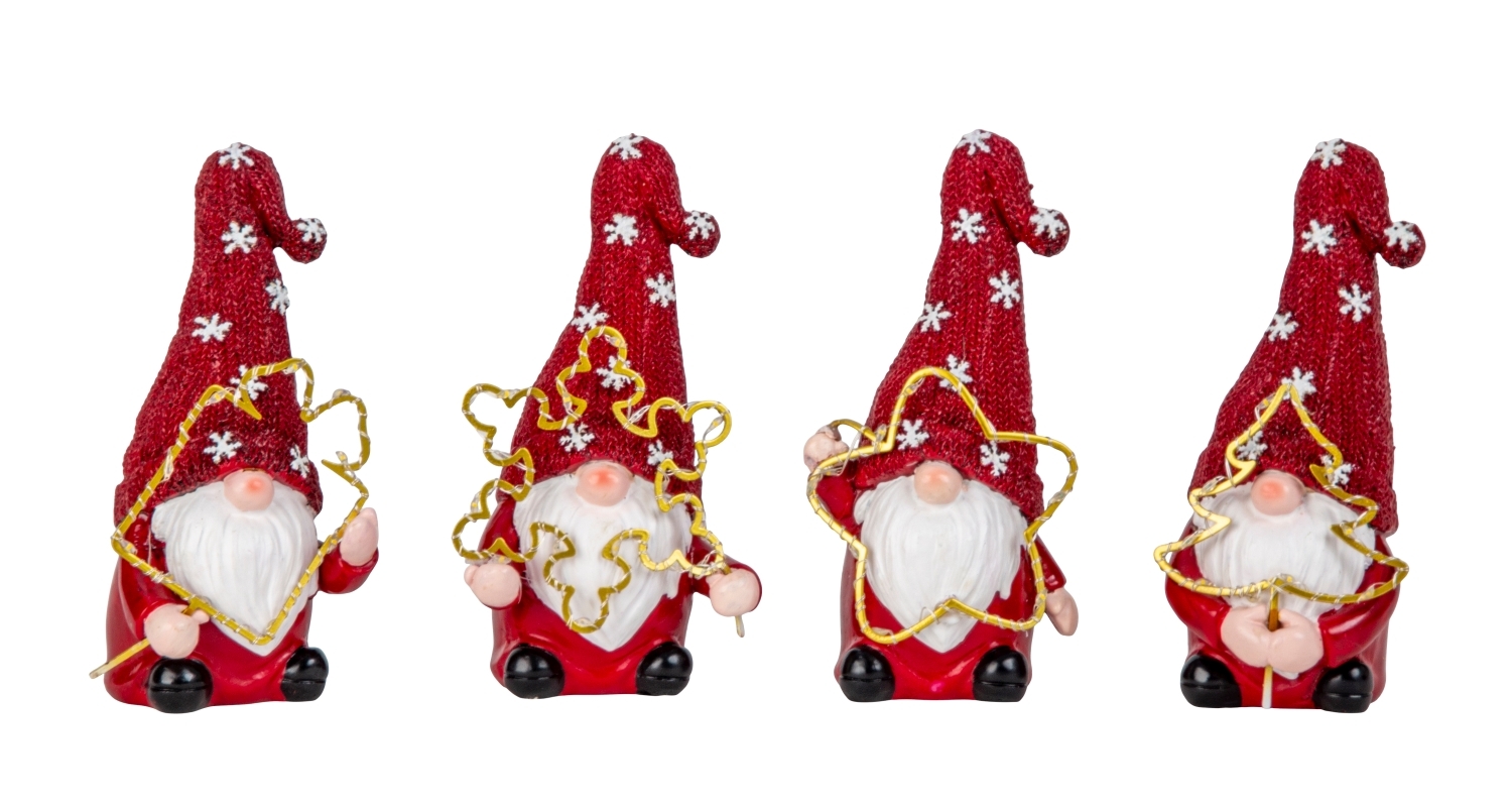 Weihnachts-Schlafmützenwichtel in rot mit LED-Licht h=15,5cm b=9cm sort.