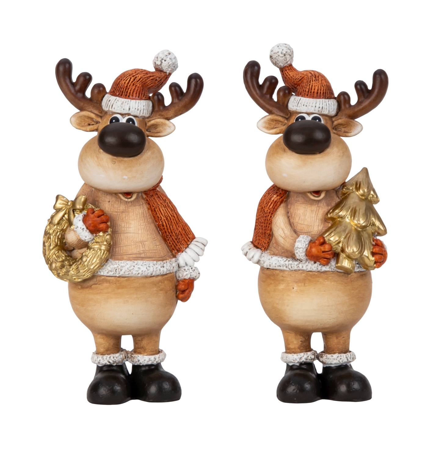 Weihnachtselche stehend mit Baum & Kranz in der Hand h=21,5+22cm b=9+10,5cm sort.