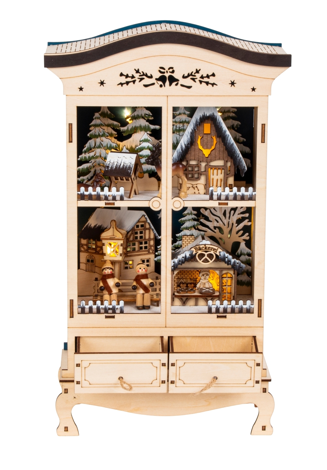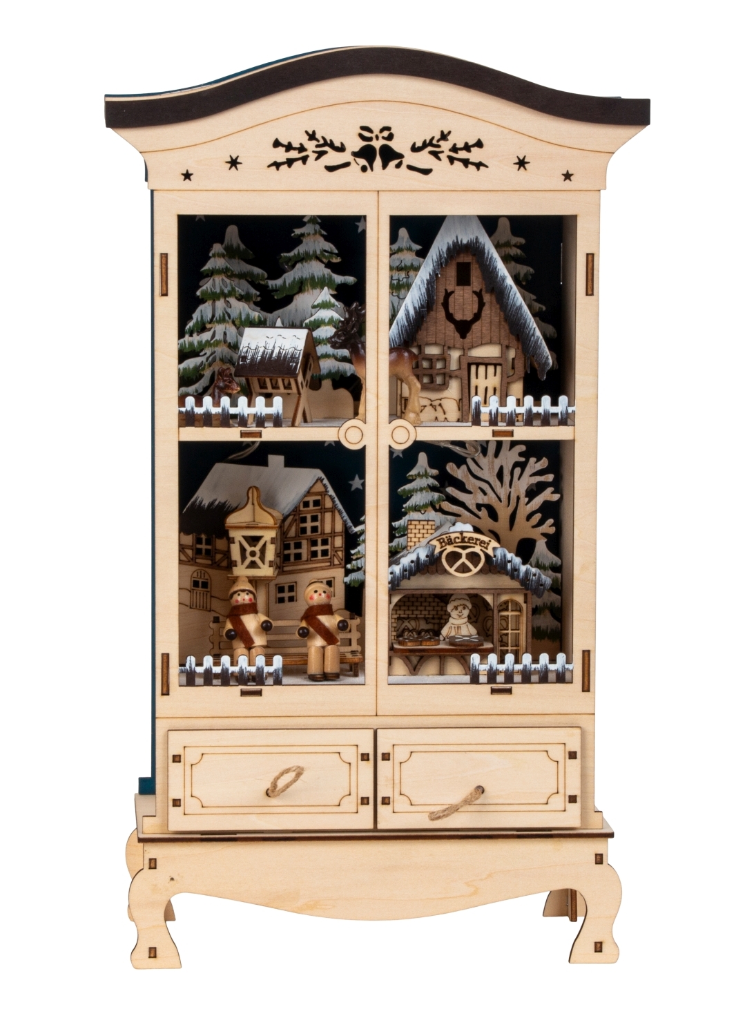 Winter-Holzdeko Kleiderschrank h=38cm b=22cm mit LED Licht